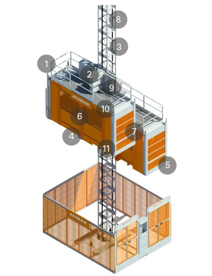 The Alimak Scando 650 XL range offers a powerful solution for vertical transport of bulky materials, featuring large car sizes and high payload capacities to boost on-site productivity. With frequency control technology, it moves passengers and materials smoothly at speeds up to 54 m/min—upgradable to 100 m/min—and can be customized in size to meet specific project requirements.
